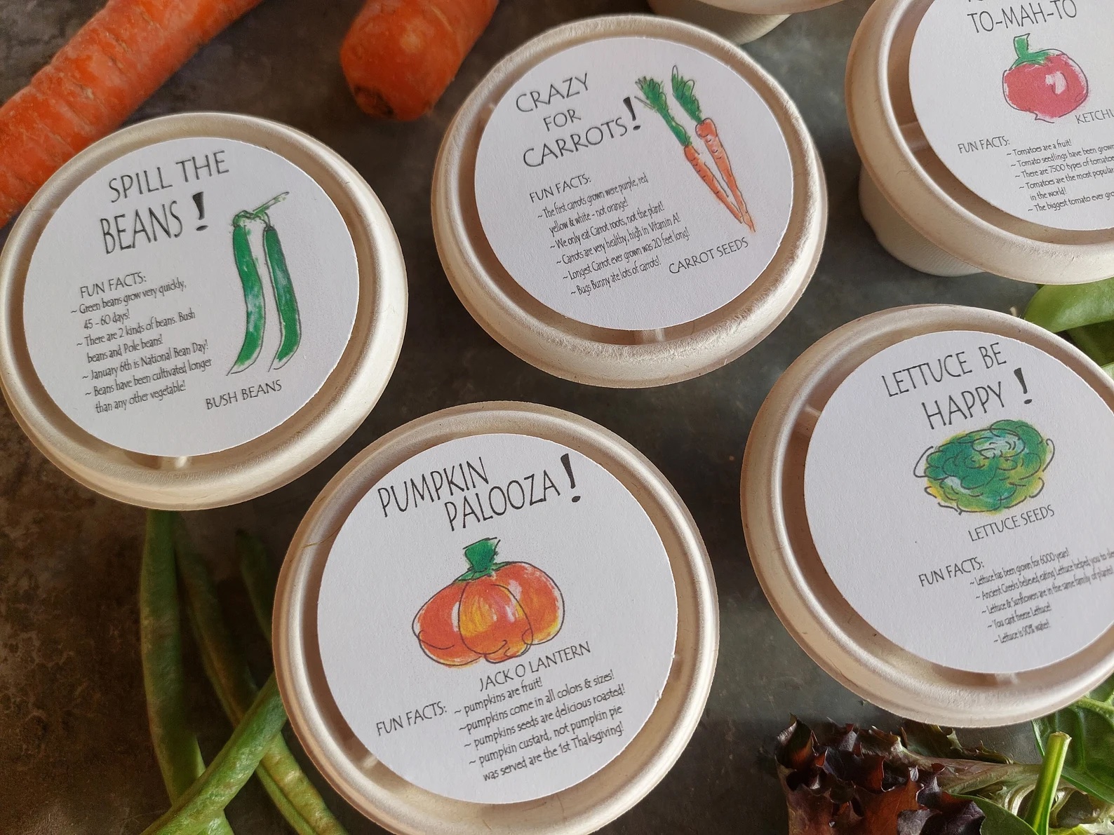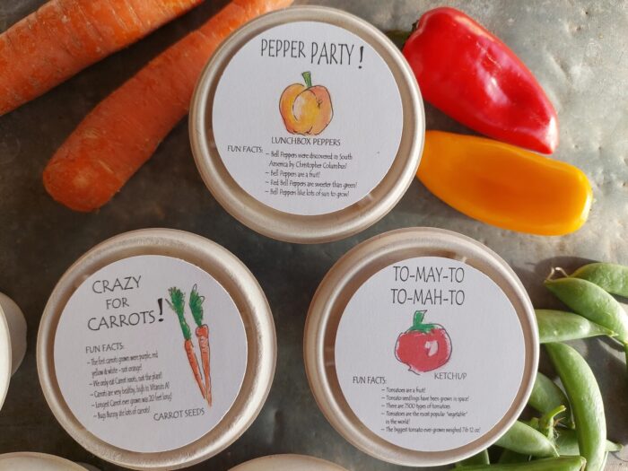 Each kit includes “fun facts” about each vegetable.