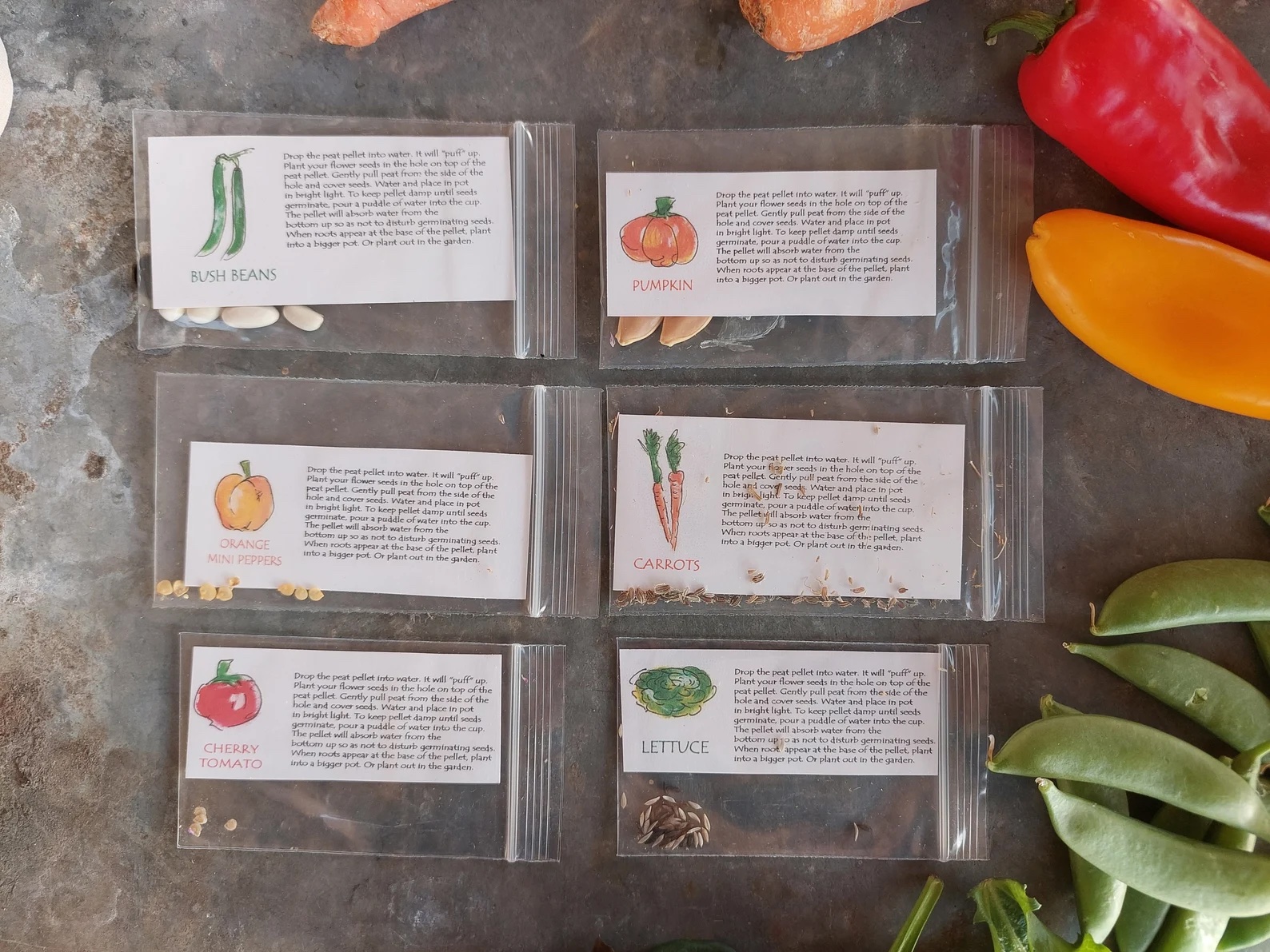 The vegetable seeds are all chosen because they are easy to grow. We want kids to be successful with growing their first vegetable.