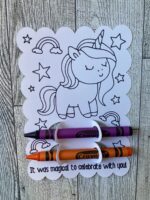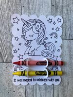 Each standard coloring card comes inside a 4×6 resealable bag, accompanied by two crayons for instant coloring excitement. P.S: Colors will be chosen at random.