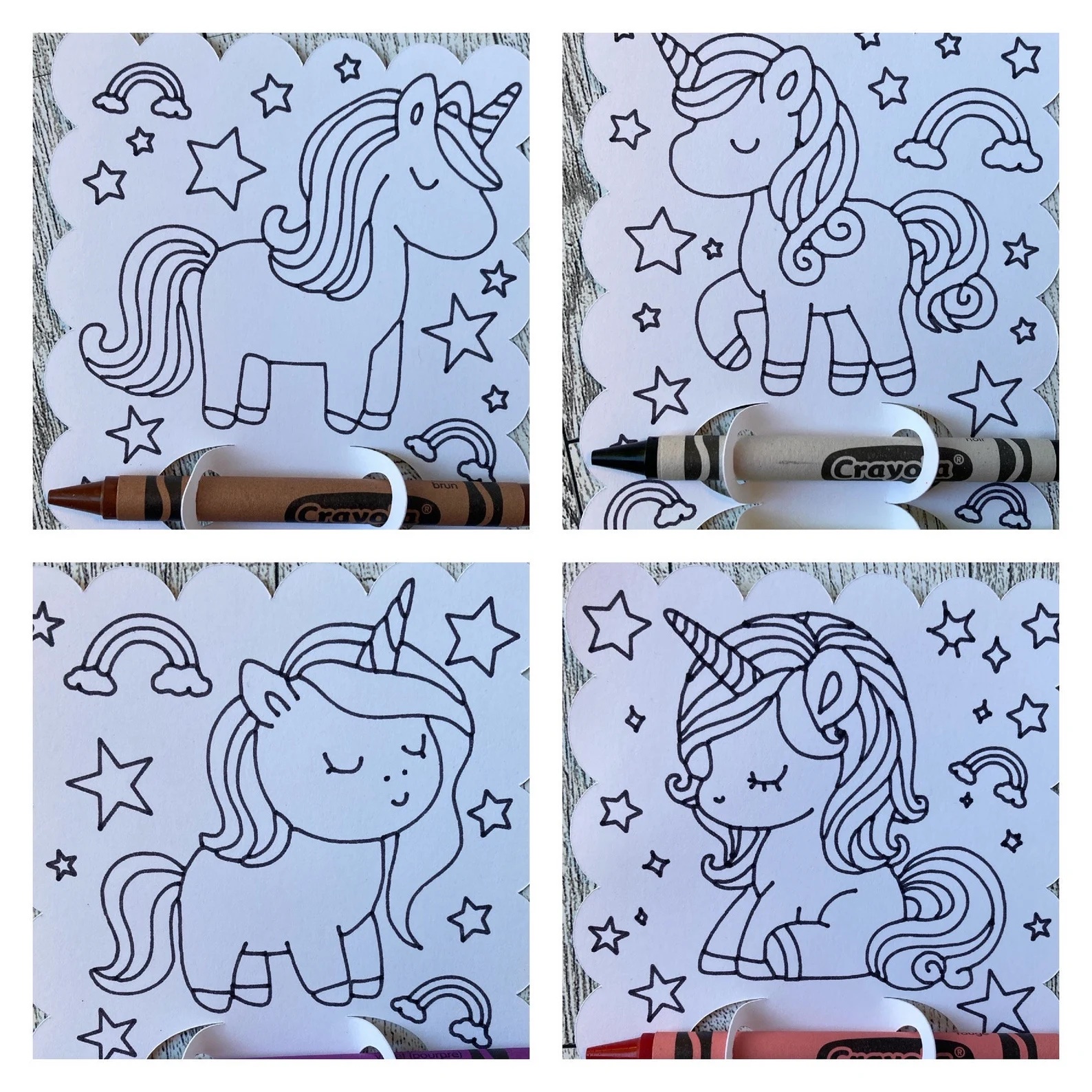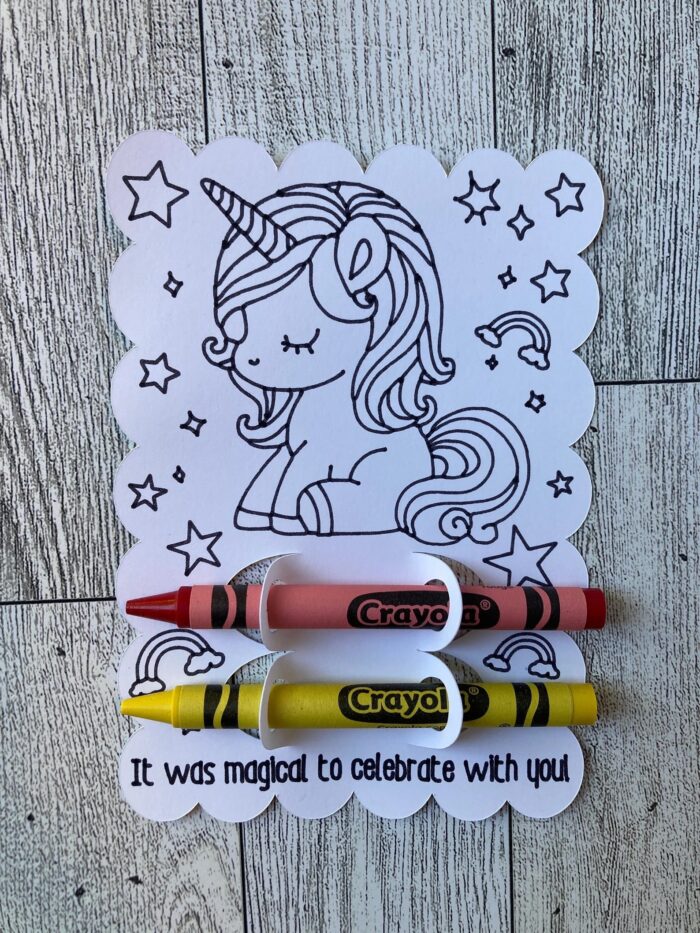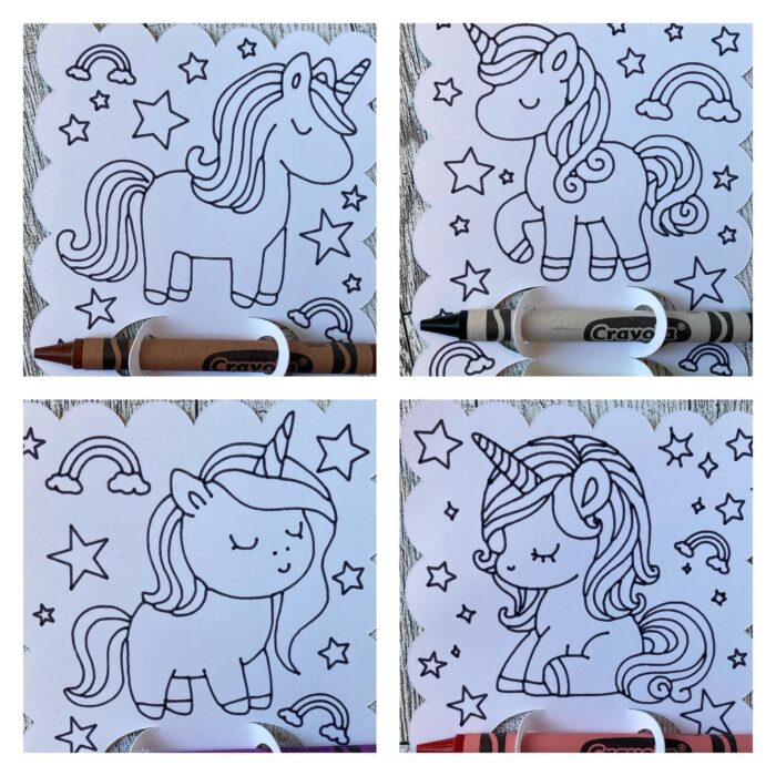 A set of 8 cards—Each coloring card features a lovable unicorn just waiting to be brought to life.