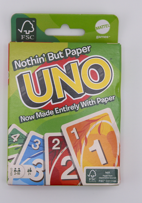 UNO Nothin’ But Paper Family Card Game with 112 Cards, 100 Percent Paper Green Gift